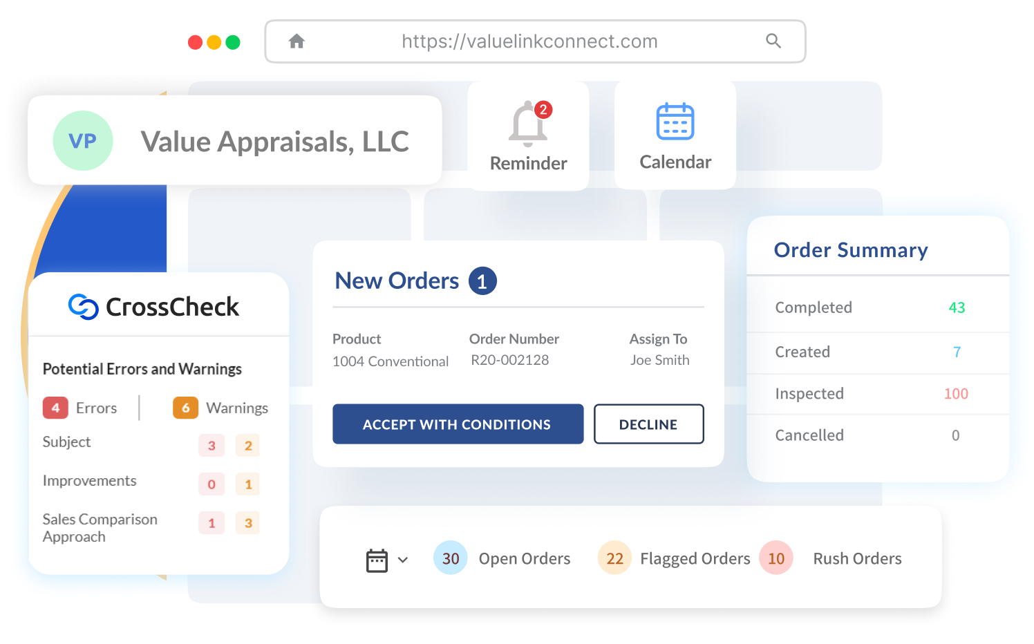 All your orders in a single dashboard. Track progress, schedule inspection times, and communicate with clients. Automated Report Reviews with CrossCheck offer you 1,000+ UCDP & EAD compliance rules, to reduce revisions and save time.